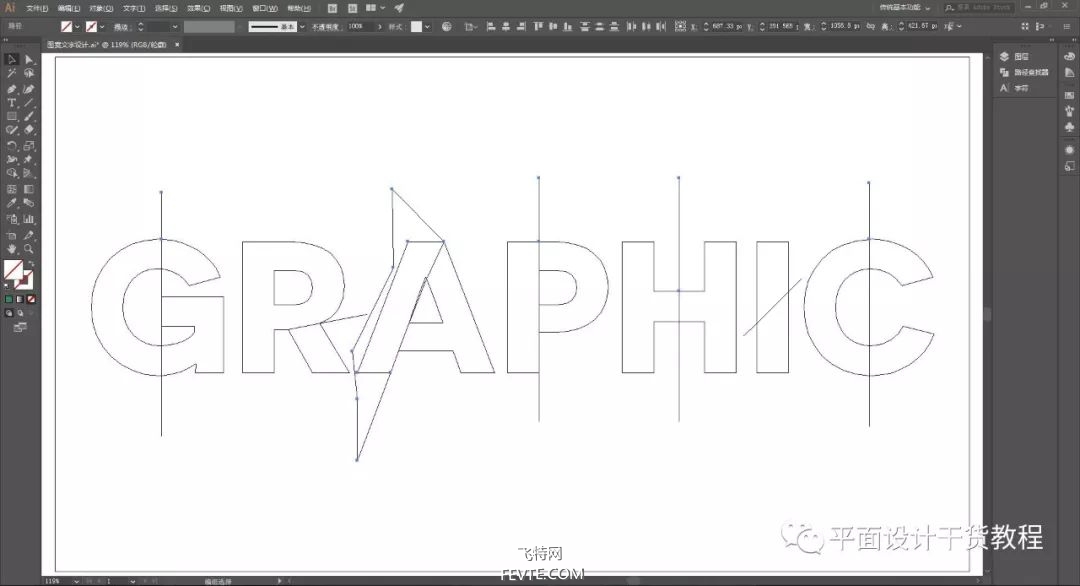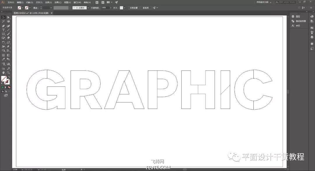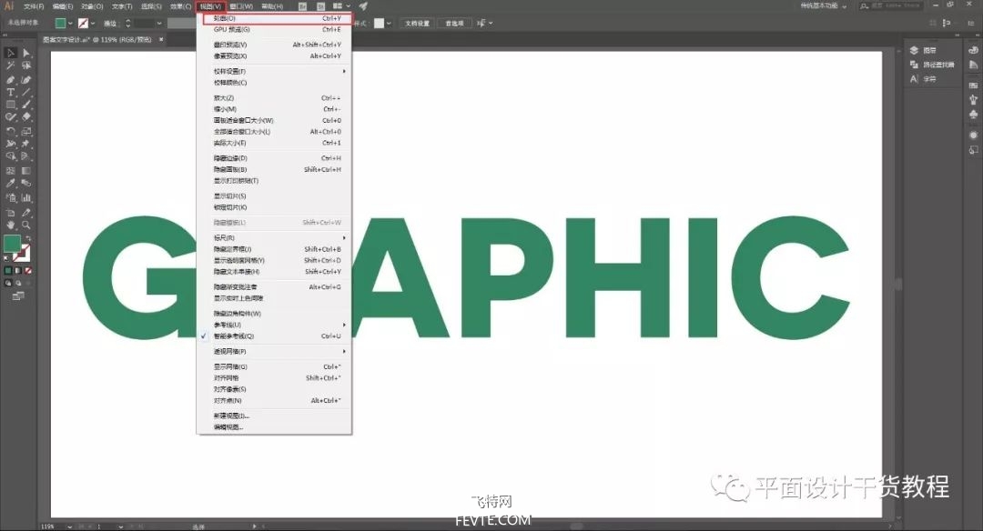 我在上一篇教程"字体特效:使用Illustrator软件设计创意阶梯文字—AI教程"里也有提到过,为了便于观察,可以将视图切换为"轮廓"模式(可以通过"视图"—"轮廓"来切换,也可以直接使用快捷键Ctrl+Y快速切换),