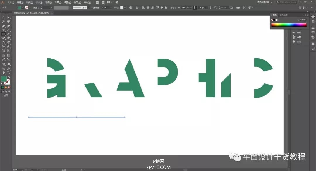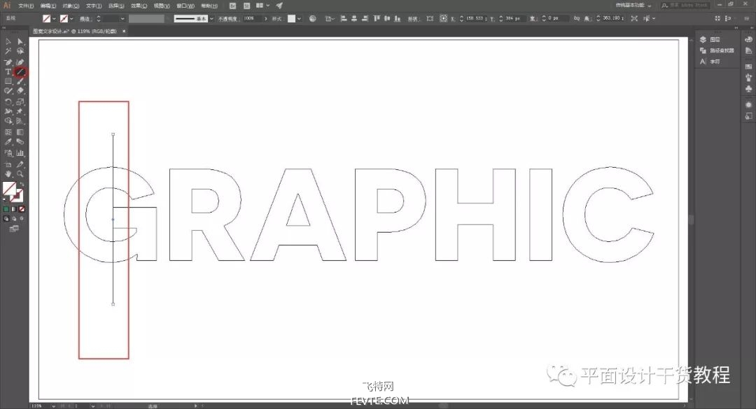 同样在其他字母上都添加相应的分割线,不过不一定都需要使用直线段工具,例如也可以使用钢笔工具圈出要分割的部分,如下图: