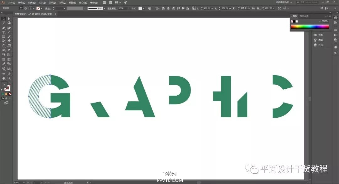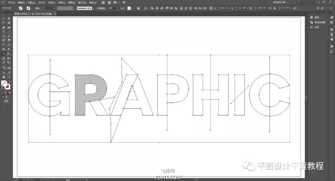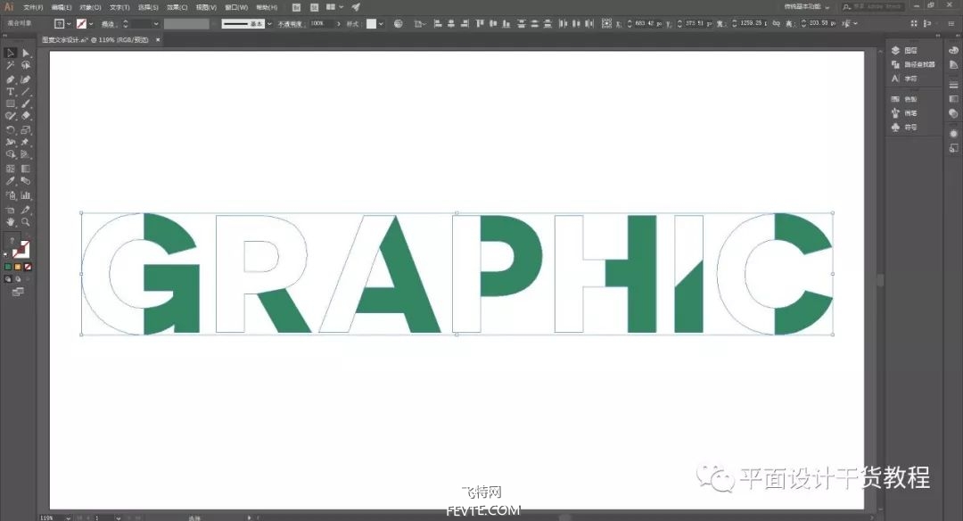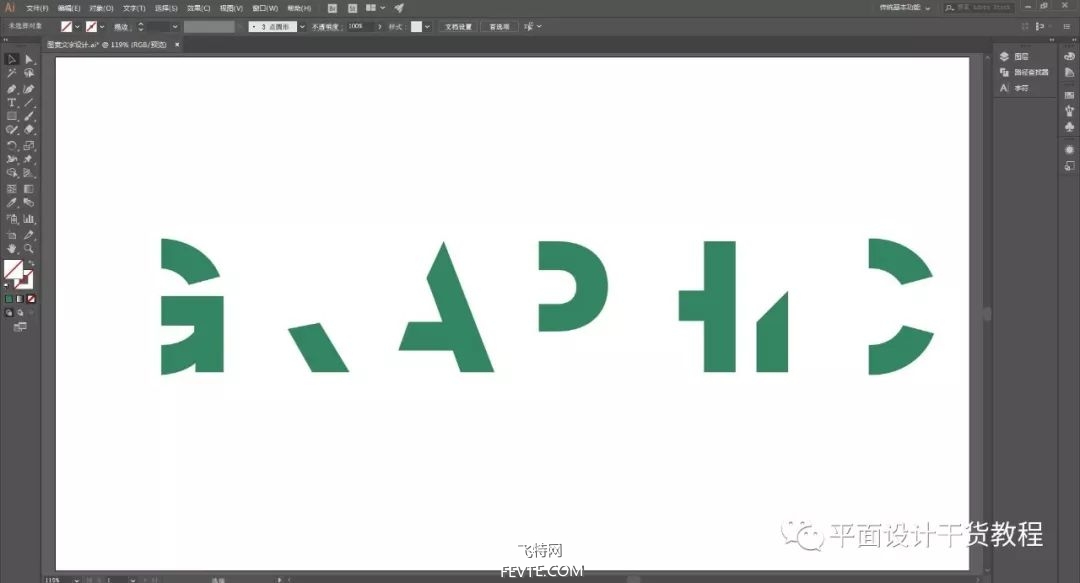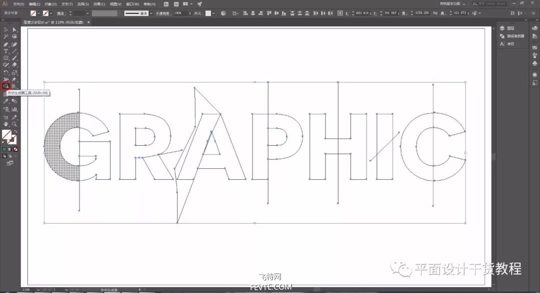 接下来就是要进行分割操作了,上一篇教程"字体特效:使用Illustrator软件设计创意阶梯文字—AI教程"里使用的是通过路径查找器工具里的"分割"命令将对象进行分割的方法,这里给大家介绍另外一个方法:使用形状生成器工具对字母进行分割处理。这在上篇教程里也有提到过一下。