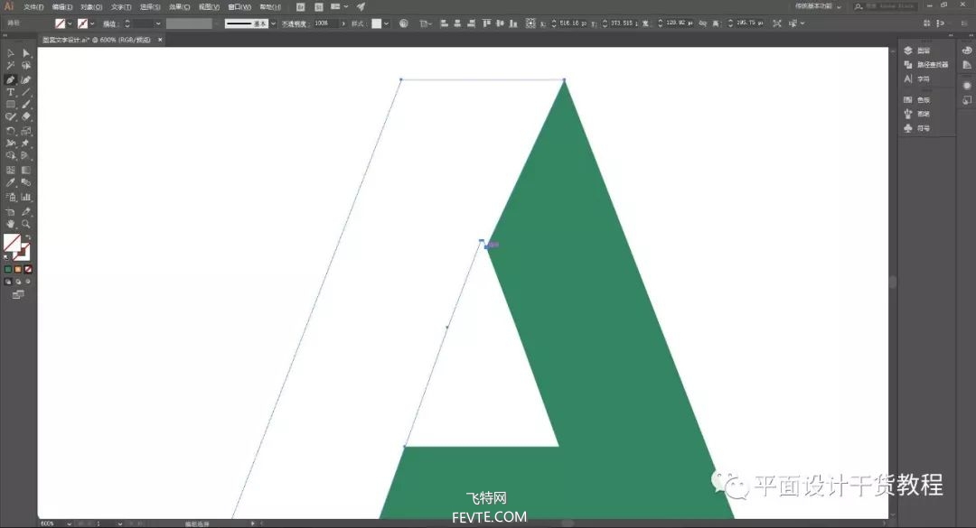 可以看到A字母两部分衔接的位置没有处理的很好,可以放大稍微调整一下: