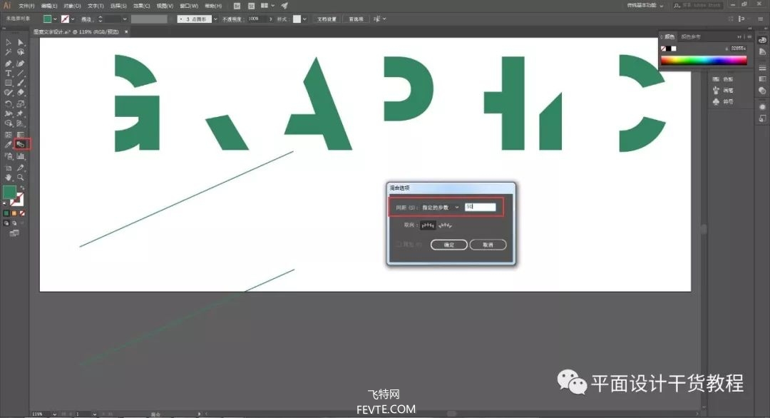 接下来就要制作图案了,我想要制作的图案是由倾斜的线组合而成的,这种图案的制作方法有很多,我就不一一列举了,这里我是利用混合工具快速生成的,具体操作步骤如下: