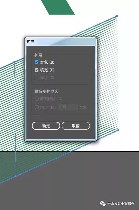 接着为了便于操作,我们将这个混合对象进行扩展,执行"对象-扩展"命令,在弹出的窗口中选择"确定",