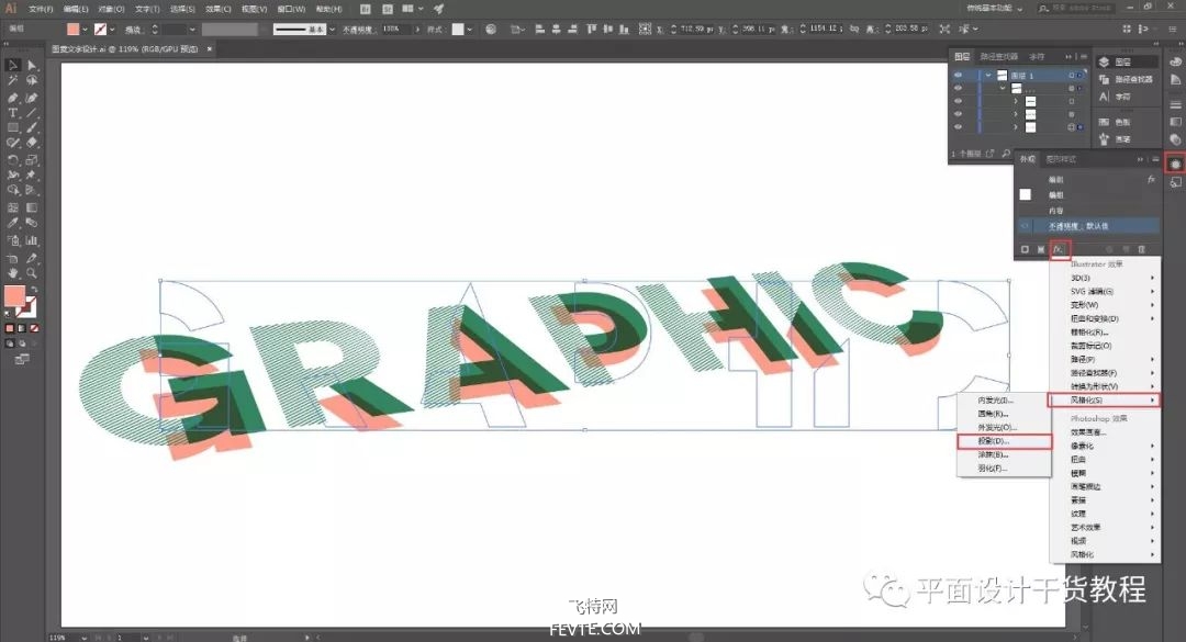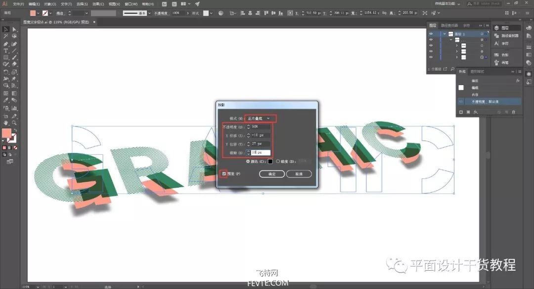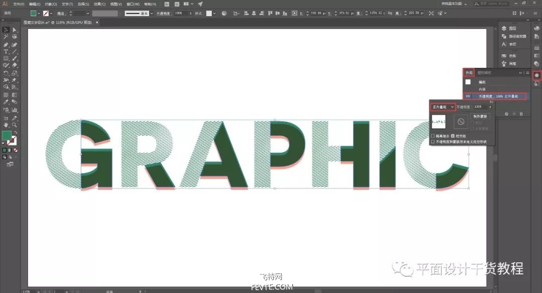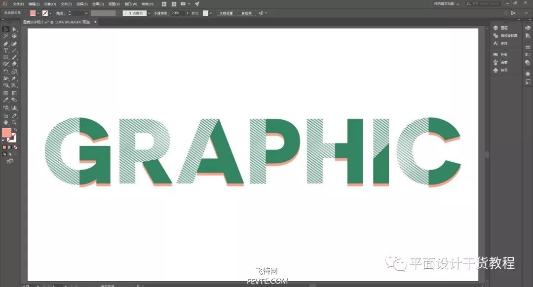 大家好,我是平面设计干货君。知识一点点累积,总有一天会厚积薄发!今天给大家分享一个字体效果设计教程:使用混合工具和剪切蒙版制作图案文字。使用的是Illustrator软件,本篇教程主要涉及到的知识点有:混合工具的使用;剪切蒙板的应用;Shift键、Alt键的灵活运用;形状生成器工具的使用;"外观"面板;图层模式的运用;3D旋转命令;投影效果的创建等等。好了,话不多说,让我们下看一下效果图,如何开始学习吧!