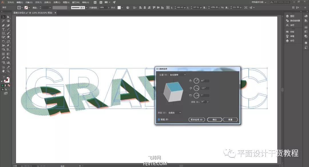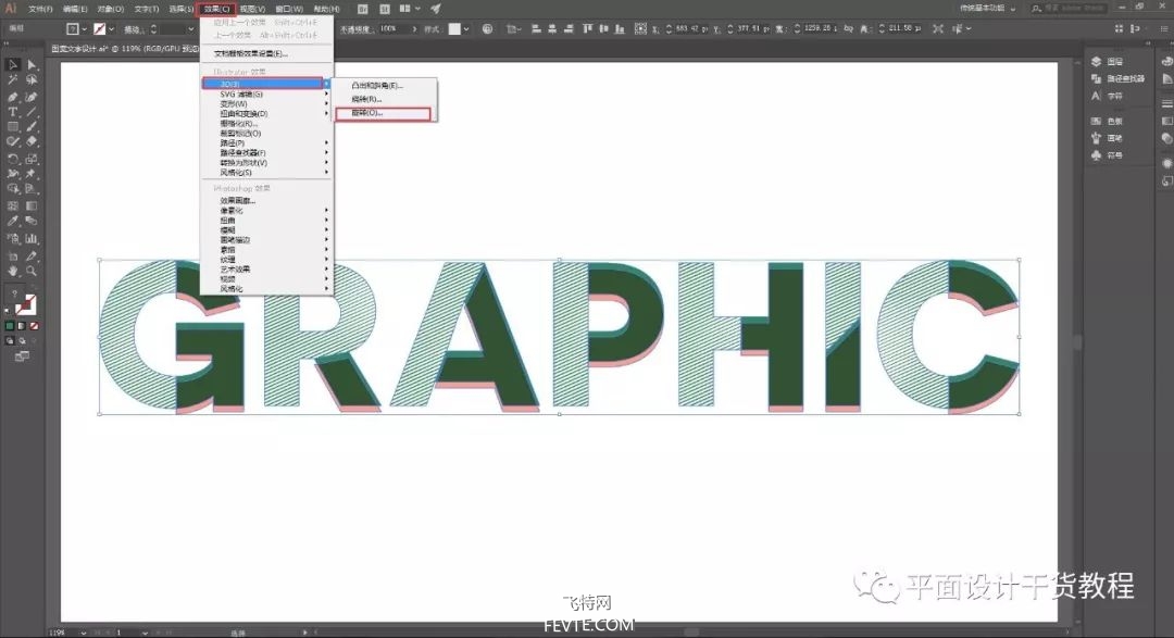 接着全选所有对象,Ctrl+G编组,然后对这个组对象执行"效果-3D-旋转"命令,