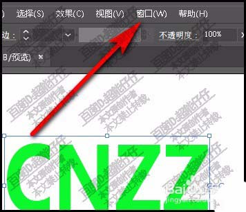 2、选中文字,再点开菜单栏中的窗口选项。弹出下拉菜单。