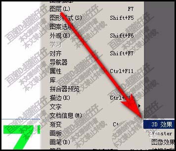 4、这时候,右侧又弹出了子菜单,选择第一项:3D效果。