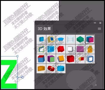5、即时,调出了3D效果的面板。这里有多个3D样式给我们选择。