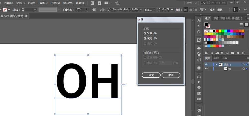 3、对字体进行对象-扩展。复制两份在底层。
