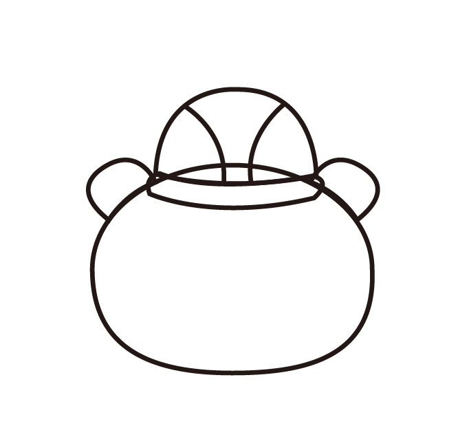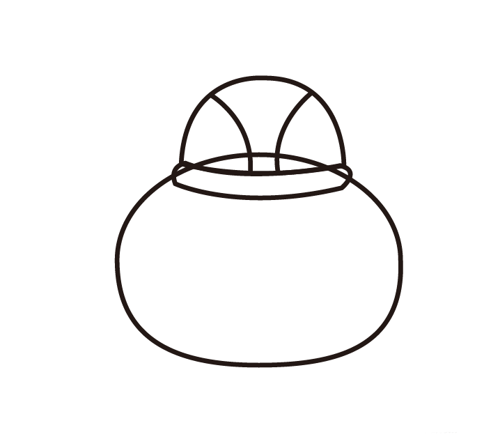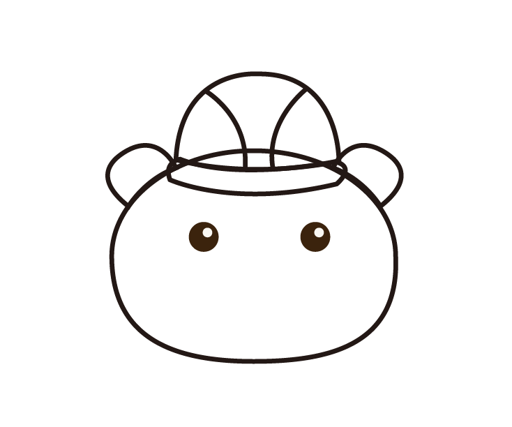 3、在帽子左侧画出一只耳朵,然后复制一个,镜像后放在帽子右侧,连接在小熊的头部。