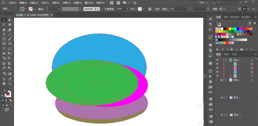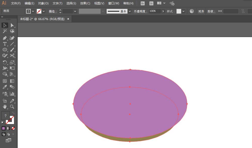 1、椭圆工具绘制两个椭圆形,减去顶层。