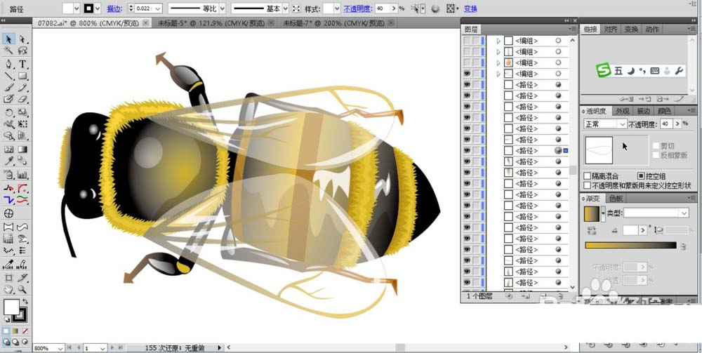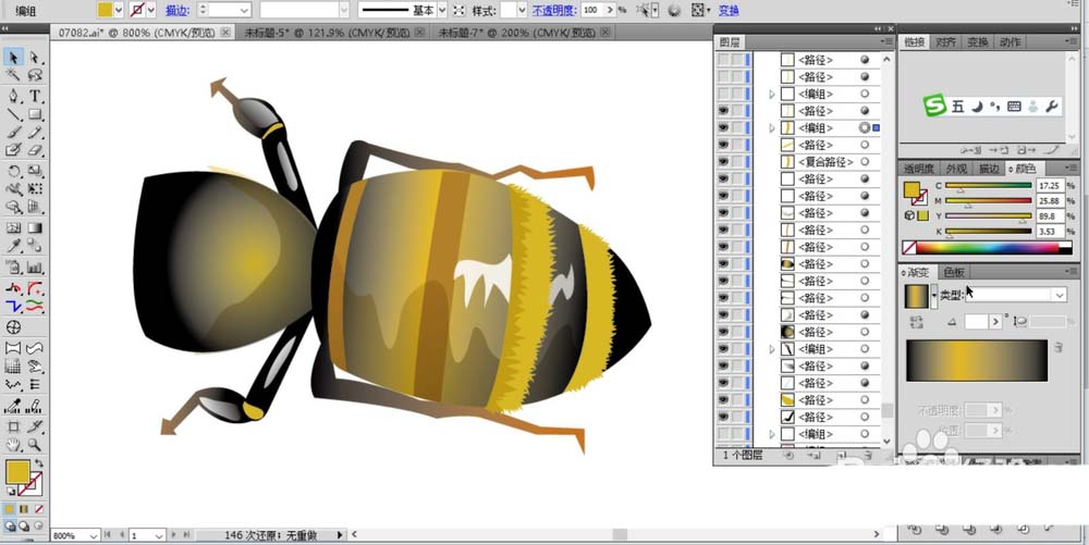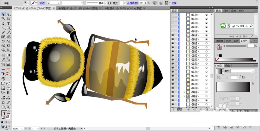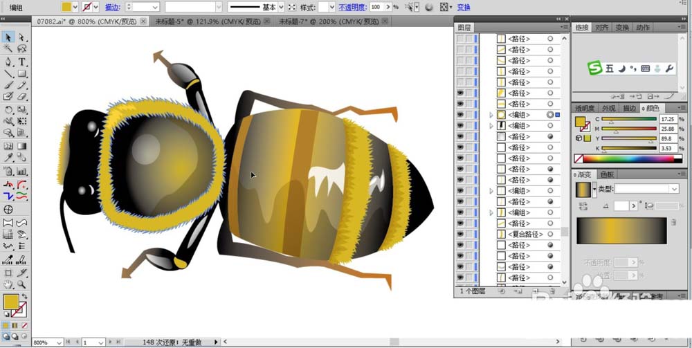 ai中想要画复杂逼真的矢量蜜蜂,绘制这个图形需要大量的使用路径,大量的使用色彩搭配填充从而呈现出一只栩栩如生的小蜜蜂,下面我们就来看看详细的教程。