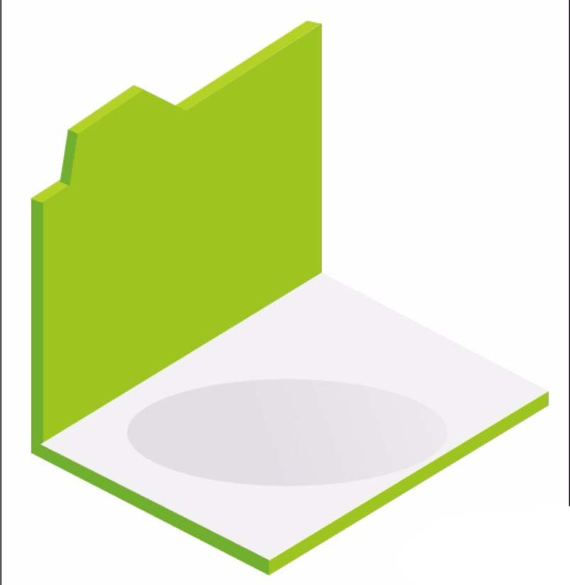 5、用灰白色的渐变填充文件夹的下半部分,用灰黑色填充文件夹下半部分上面的阴影路径,用绿色填充下半部分文件夹的侧面。