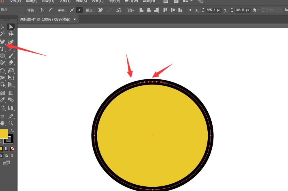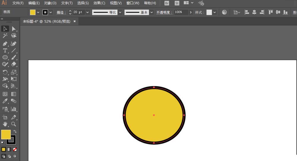 2、椭圆工具绘制圆形,填充颜色,增加描边。