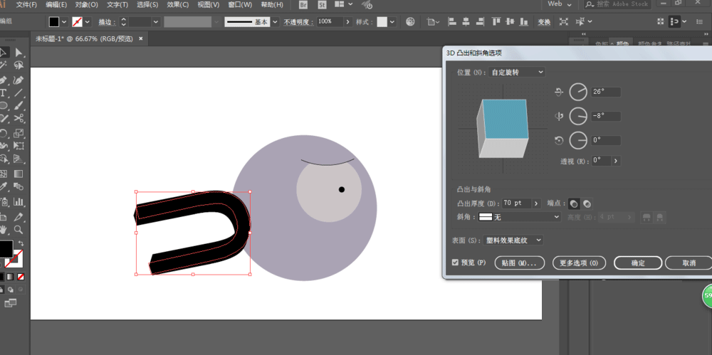 4、使用3D凸出和斜角,调整参数。联集相关的部分。