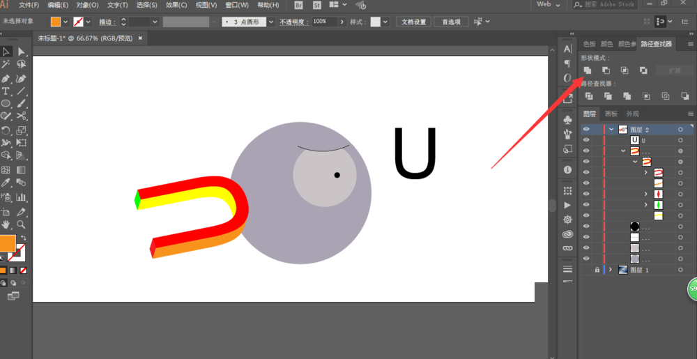 2、用形状生成工具去掉不要的部分绘制眼睛。