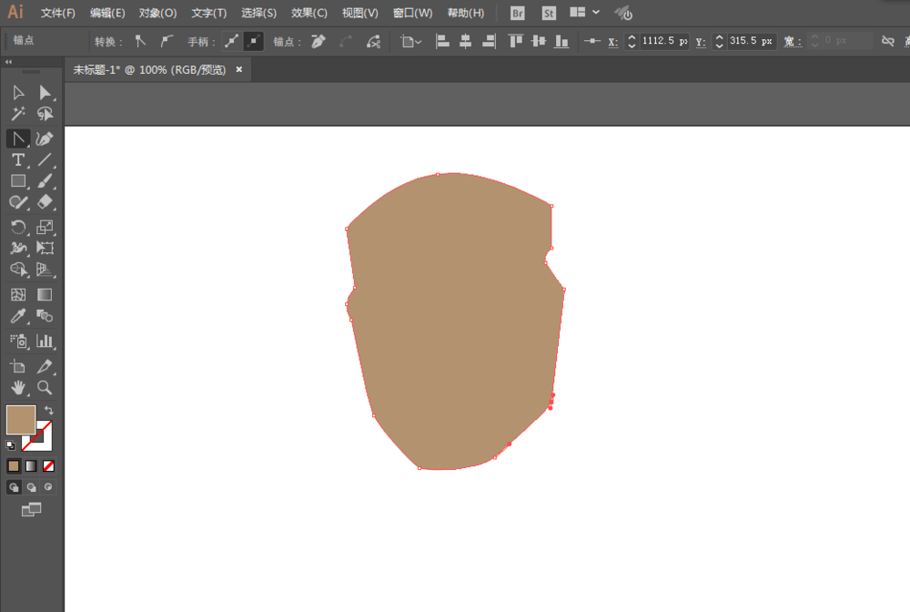 1、钢笔工具绘制脸部。直接选择工具调整锚点位置。
