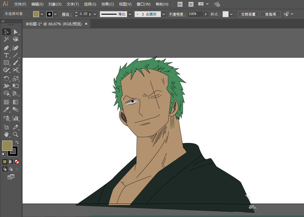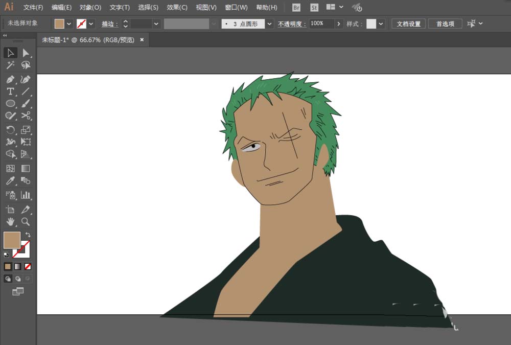 ai中绘制动画角色很简单,想要绘制索隆,该怎么画呢?下面我们就来详细的教程。