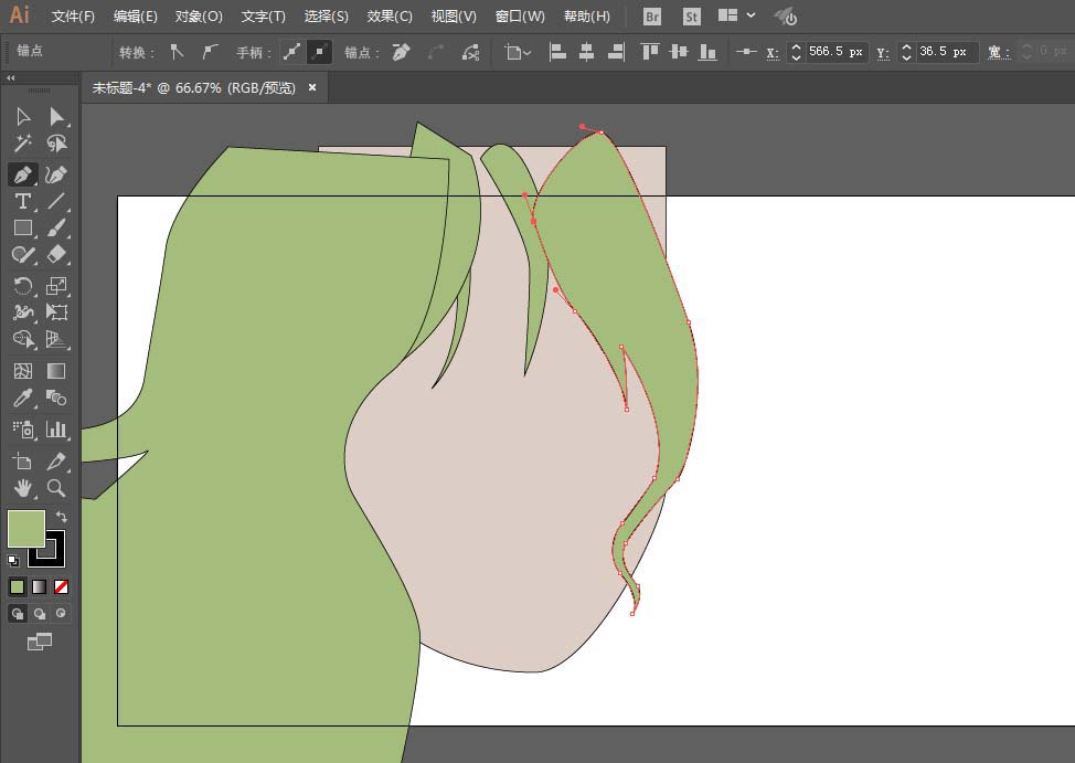 2、添加锚点,用直接选择工具调整锚点的位置。
