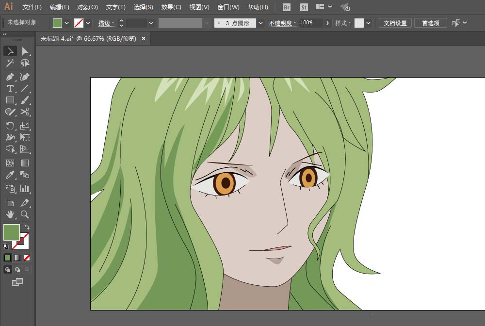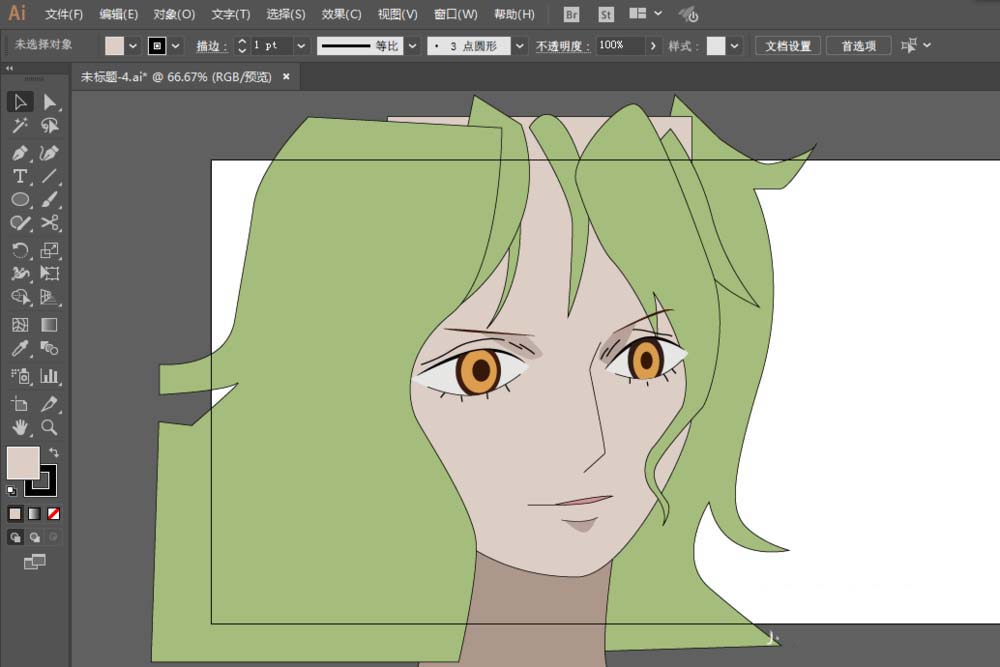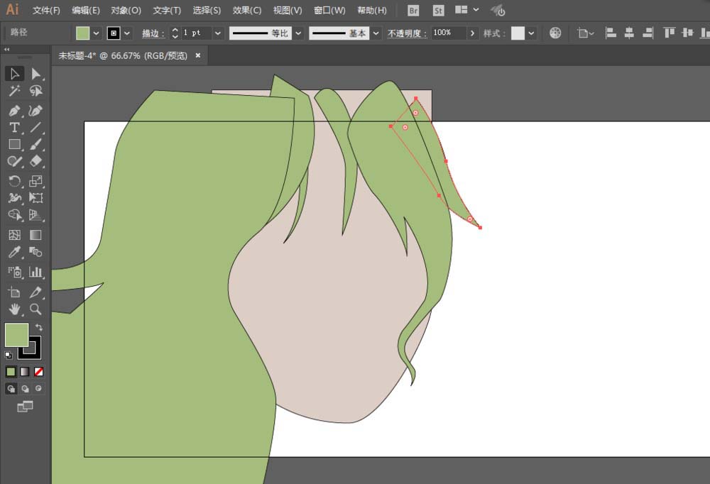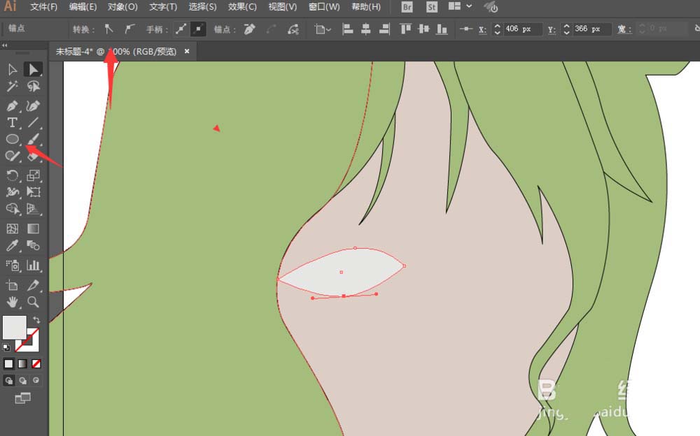 3、钢笔工具绘制头发部分,锚点工具调整为平滑。
