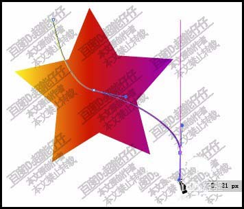 2、再用钢笔工具,在五星任意位置绘制出一条线。比如,曲线吧。