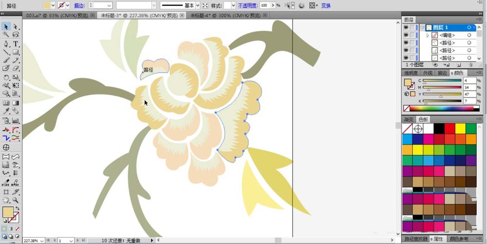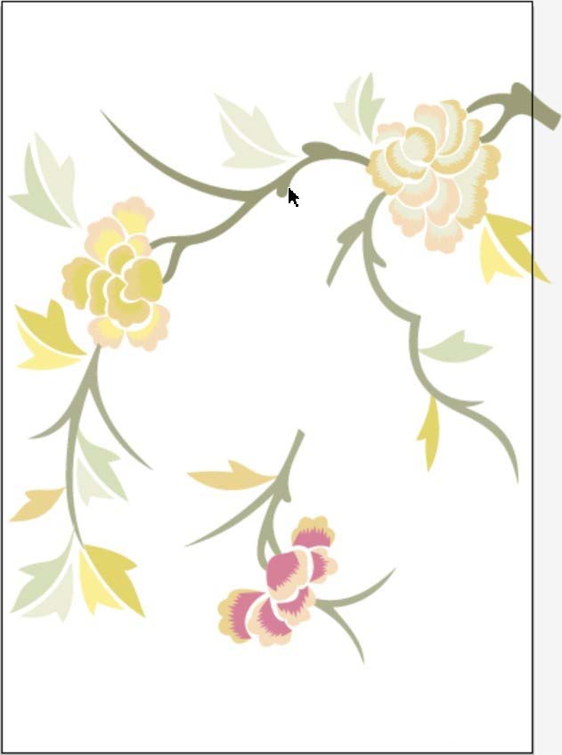 7、左下侧花朵选择淡粉红色、淡草绿色、淡米黄色搭配填充。
