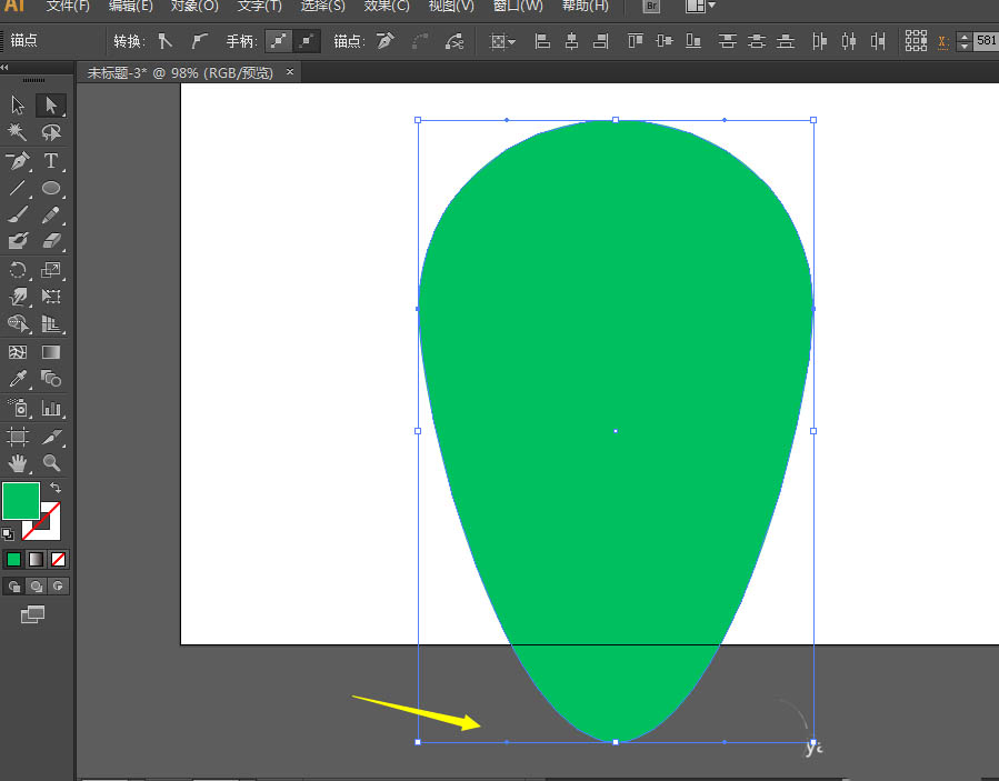 2、用直接选择工具选中底部的锚点,然后拖动。现在就可以填充渐变颜色了。