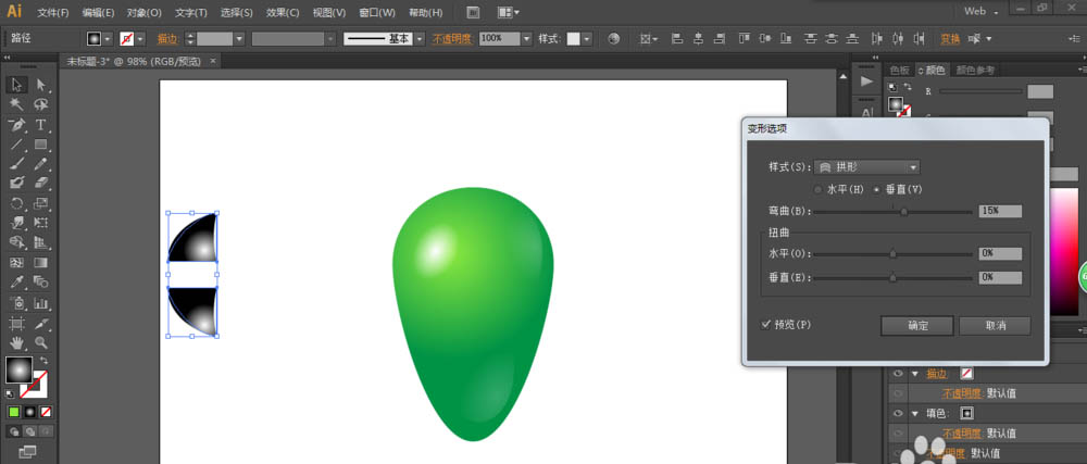 5、绘制一个圆形和两个长方形,然后减去顶部,效果-变形-拱形,调整数值,拖动到高光的部分,然后改为滤色模式。