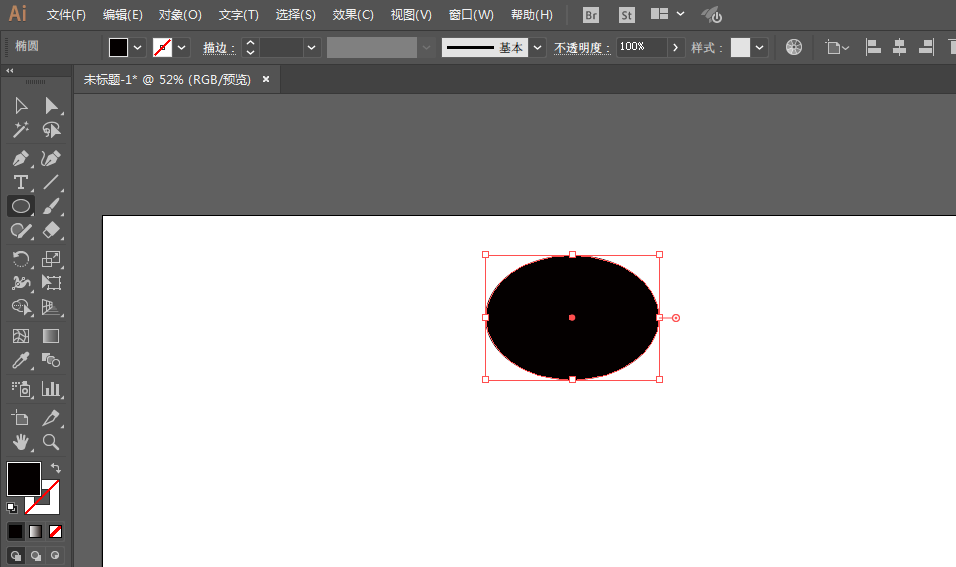 1、用椭圆工具绘制椭圆形,填充黑色。