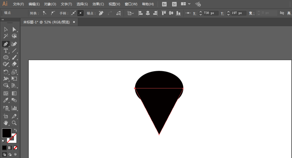 2、钢笔工具绘制三角形,锚点工具调整锚点。进行联合。