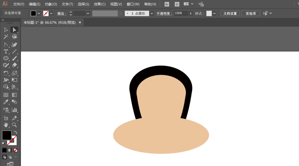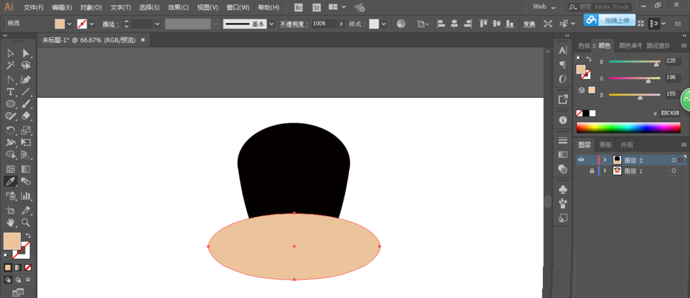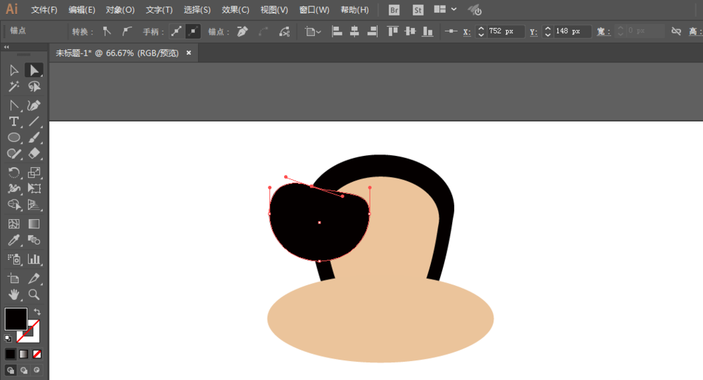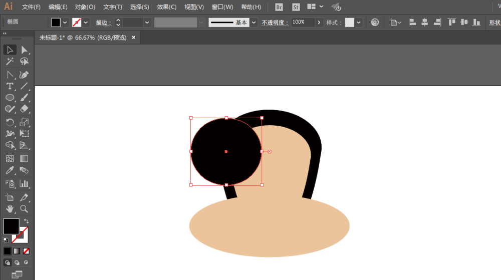 4、椭圆工具绘制圆形,制作耳朵,锚点工具调整锚点。