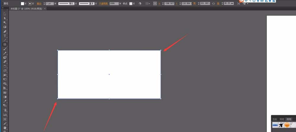 1、首先打开AI软件,新建一个页面,大小随意设定即可。在工具栏中选择矩形工具,绘制一个矩形。填充色为白色,轮廓色为无。这样一个长方形绘制好了