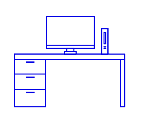 9、最后,再画出地面的部分,用矩形画出桌子下方的主机,以及垃圾桶等物品,电脑桌就画好了。