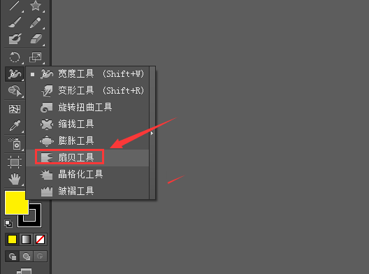 5、点击宽度工具选项右侧的下拉箭头,在其下拉菜单那里找到扇贝工具,如图所示: