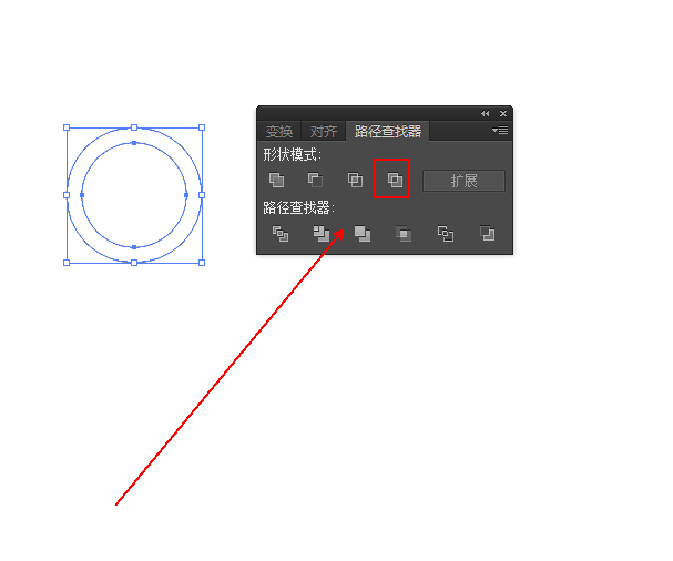 9、在【路径查找器】窗口中点击【差集】选项。