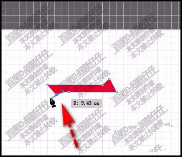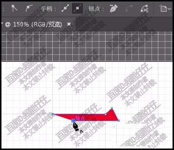 7、如图所示,斜下在这网格点上点击一下,落下第四个锚点。