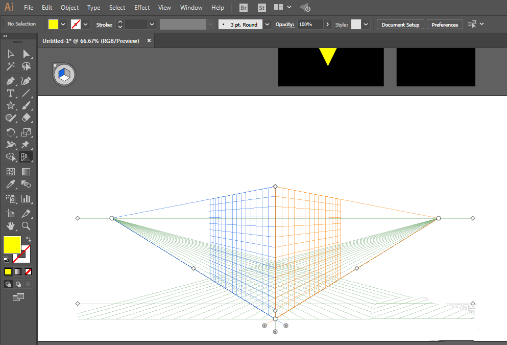 3、打开透视网格工具,先把矩形挪动到上方。