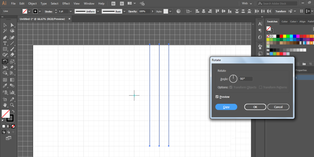 3、直线工具绘制如图的直线,选择下面的三根直线,进行旋转复制。