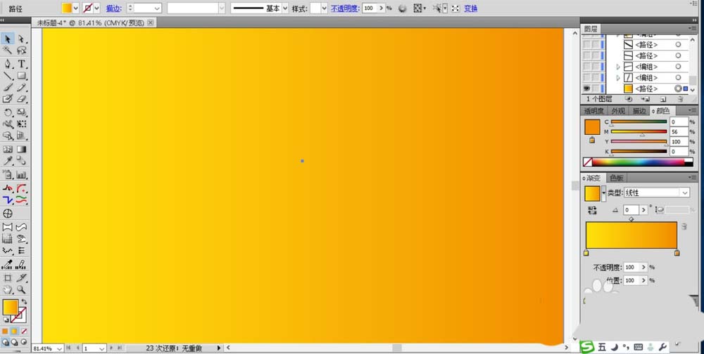 1、设置一个橙黄色的渐变并填充背景,这是衬托花朵美丽的必要元素。