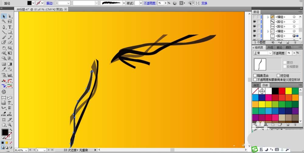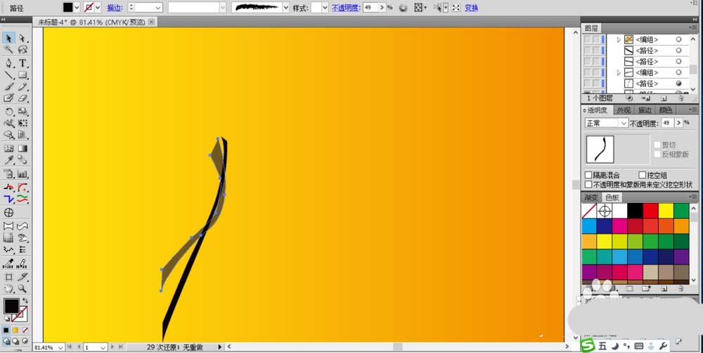 2、使用钢笔工具在背景上面画出花朵的枝条,我们用灰黑色来填充枝条的路径,多根枝条可以使用一下半透明的效果,从而让枝条的层次出来。