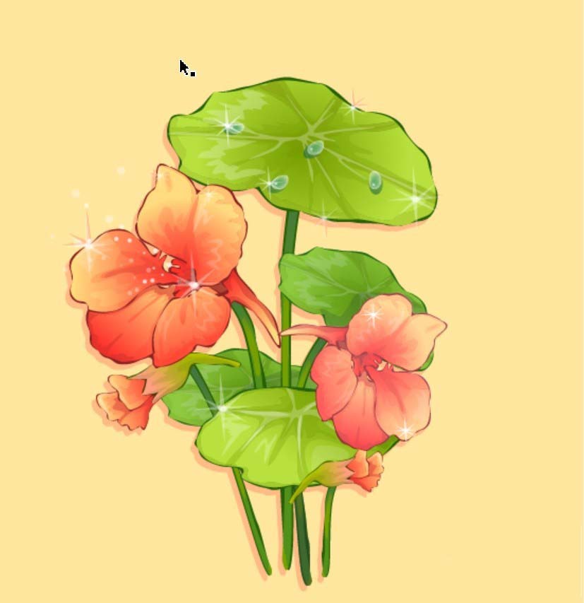6、描绘很多的星星与圆珠来装饰整个红色的花朵与绿色的叶片。这些元素都是半透明的。