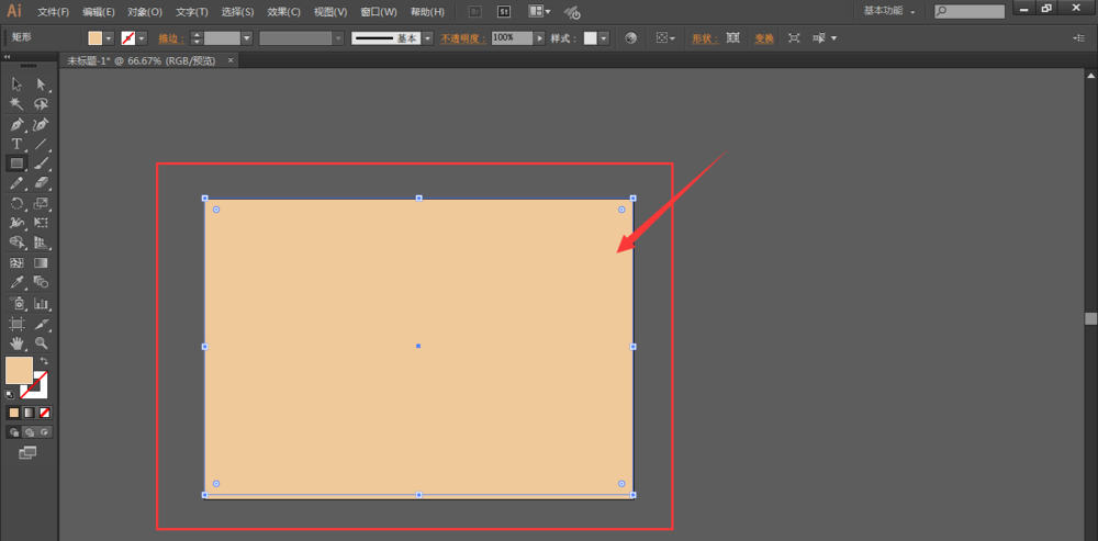 1、在illustrator软件中建立画布后,使用矩形工具绘制矩形,然后填充一个皮肤的颜色,然后ctrl+2锁定图层;【可以将一张图片图片放入到文档中当做参考对象,使用吸笔工具吸取颜色】