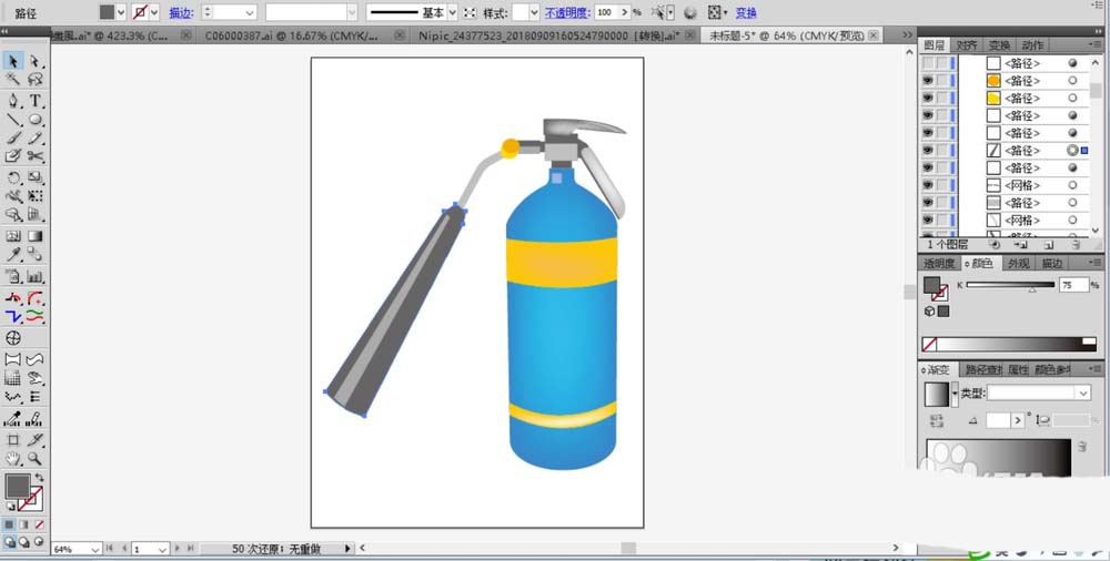现在灭火器很常见,一般家里也会有,该怎么画灭火器图形呢?下面我们就来看看ai画灭火器图标的教程。