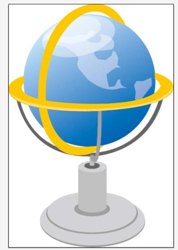7、我们在蓝色圆形的上方绘制出白色的阴影,也是半透明的状态,在蓝色圆形的左右与上下各绘制出一个黄色的圆圈,地球仪素材设计就完成了,当然,我们还可以改变地球仪的球体色调成为绿色,这也是非常漂亮的。