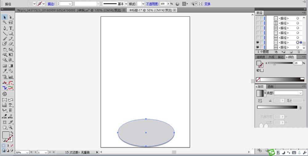 5、在蓝色的圆形上面绘制出白色的陆地轮廓,我们设置成半透明的状态。