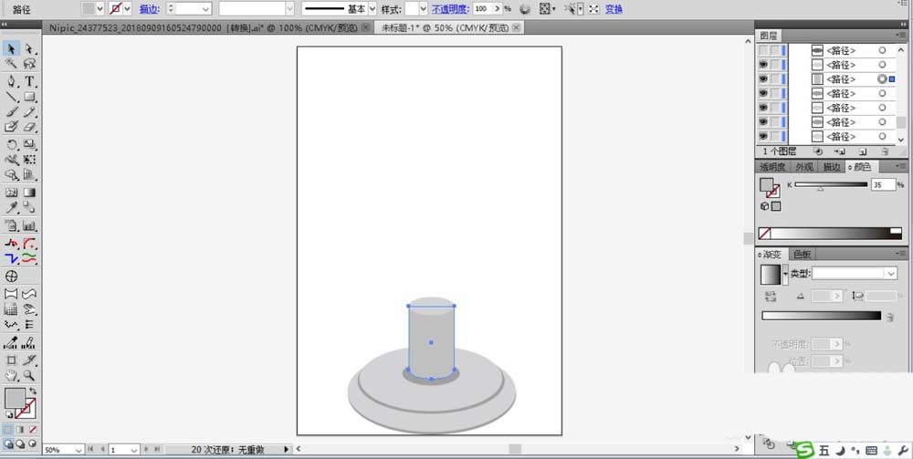 3、接着,我们开始绘制这个地球仪的圆柱形的支撑柱,也是使用圆形工具与钢笔工具结合绘制填充为灰白色。圆柱色调稍暗一些,圆柱表面稍亮一些。