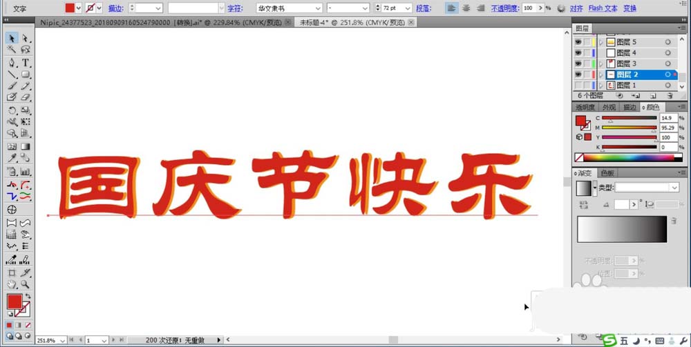 7、选择文字工具打出所有的文字,并做出一个淡色调的阴影。文字用红色填充,阴影用橙红色填充,国庆手抄报设计完成了。