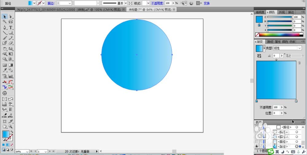 1、先用圆形工具画出一个正圆形并填充为蓝白色的渐变,这个作为地球的主体。