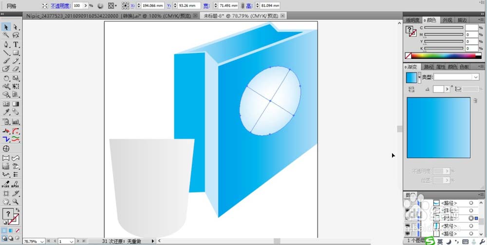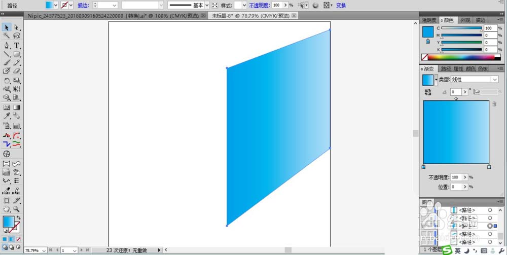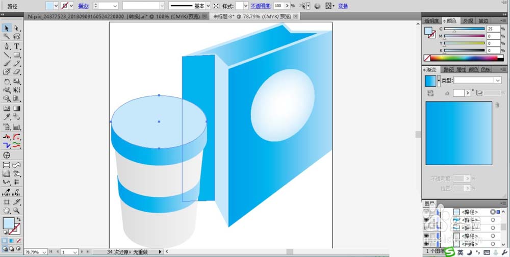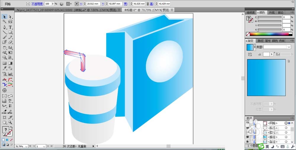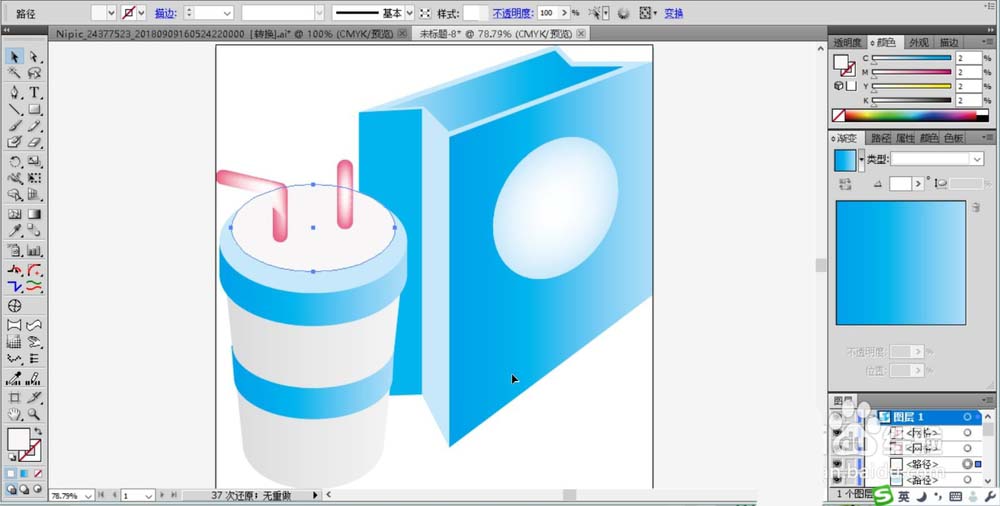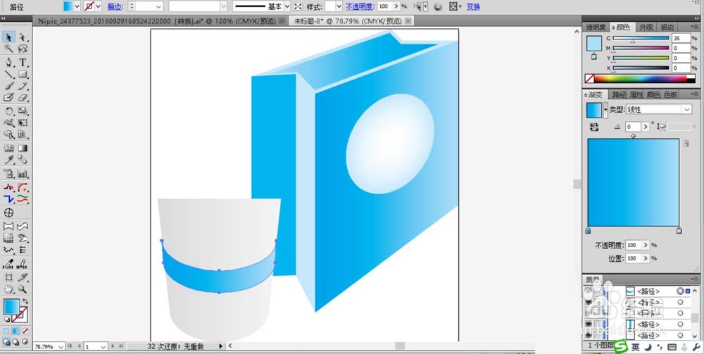 5、我们在杯身画出一个封闭的四边形的路径并填充蓝色的渐变。