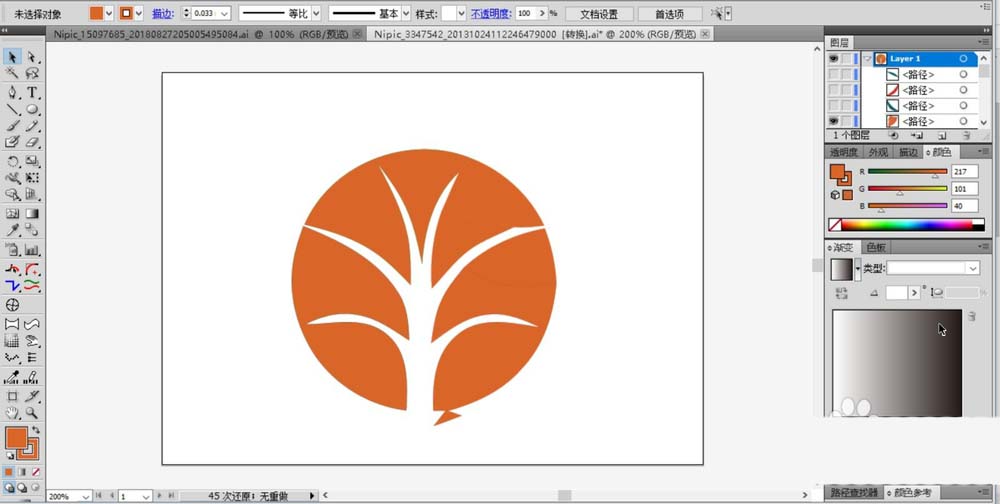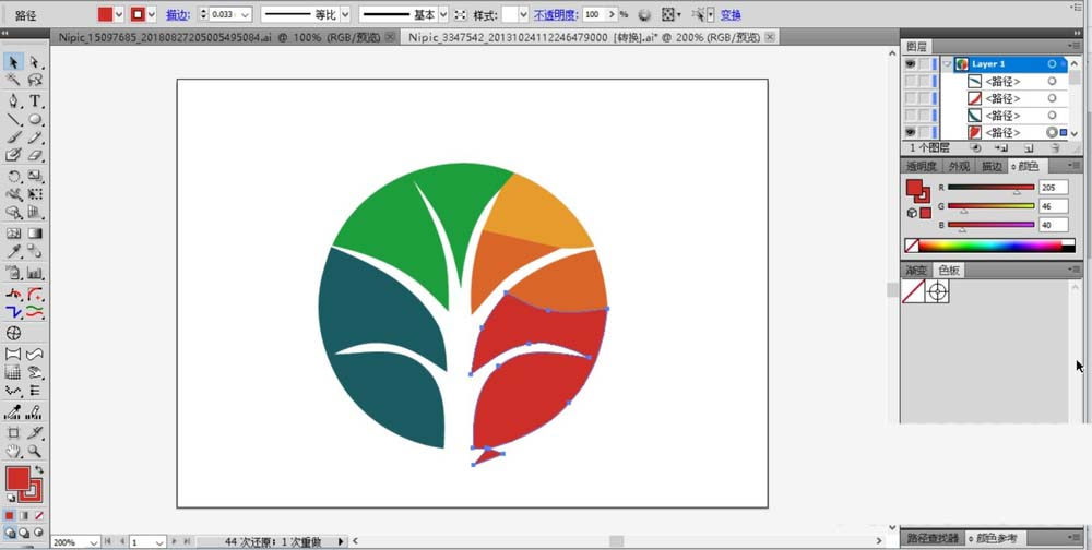 1、首先,我们根据自己的理念创意出一个标志的基本轮廓,用大树的形状来切割一个圆形,从而有了大树成长的理念代表了教育之后人才的成长与成功。