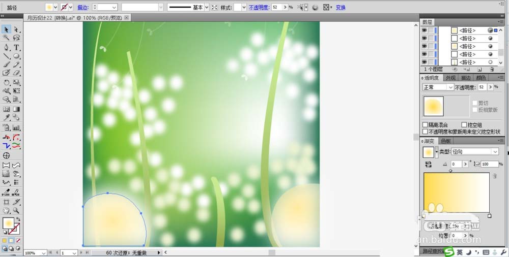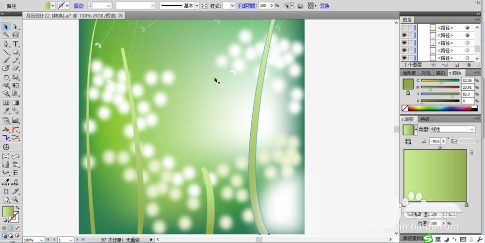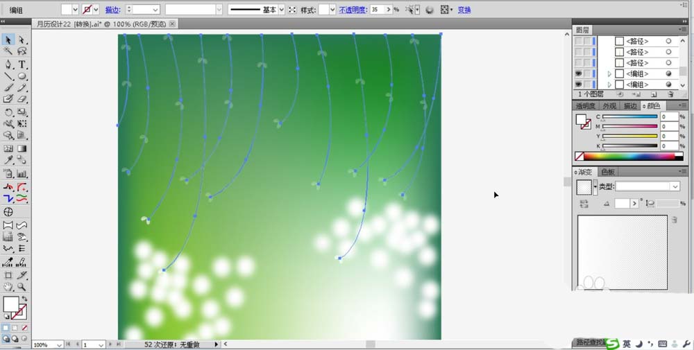4、从画面下方绘制出绿色的茎秆,用绿色的渐变填充,复制茎杆让其更多元。